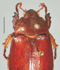 Abstract: A teratological case is described in a Pelidnota polita Latreillle, 1812 specimen from Colombia, Sucre Department. The case belongs to a trematoelitry plus a chromatic anomaly, unilateral in the right elytron.